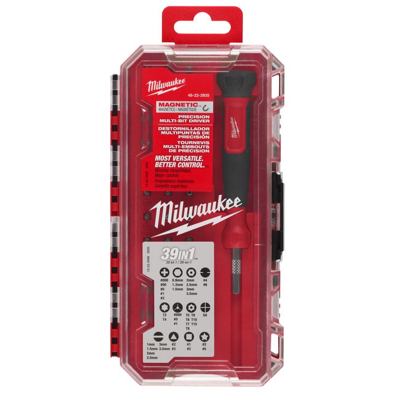 Milwaukee 39イン1マルチビットドライバーは、締め付けや精密な調節において、より万能で、より優れたコントロール性を提供します。マルチビットドライバーは、快適な滑り止めグリップハンドルを備え、最大限のコントロール性を実現します。2種の長さのシャンクを備えた設計のマルチビットドライバーは、ユーザーに届き難い締め具に簡単に届くよう延長したリーチを提供します。このマルチビットドライバーはまた、360度回転バックキャップを備え、優れたコントロール性を実現し、現場での作業スピードと正確性を提供します。クロムメッキ加工ビットホルダーは、錆びから保護し、作業現場の環境要因による摩耗を軽減します。