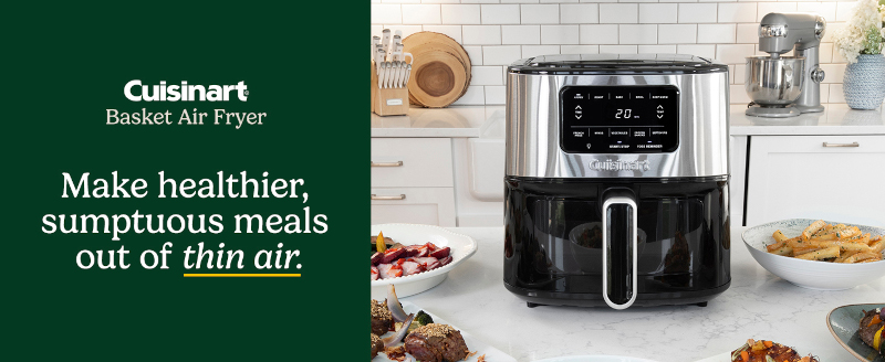 万能なCuisinartバスケット付エアフライヤーがあれば、簡単な軽食から主食まで、あらゆる料理が作れます。この卓上調理機器は、素早く均一な熱風パワー調理により、ほんの僅かな油、または油不要で揚げ物を調理でき、大好きなカリッとした食感の健康的な料理を作れます。5種の人気の事前プログラム設定、調理中に料理を裏返すためのトス通知機能、便利な可視性ウインドウを備え、簡単にエアフライ、ロースト、ベーキング、ブロイル、料理の温めなどができ、毎回美味しい仕上がりを実現できます。食事時間がさらに充実する便利なエアフライヤーを使用してメニューを輝かせましょう。